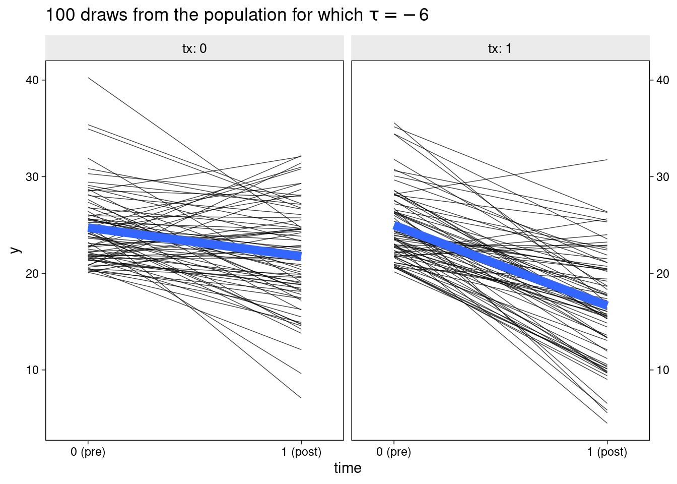 ggtitle(expression("100 draws from the population for which "*tau==-6)) +